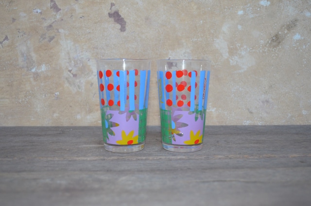 カラフルなガラスコップ 派手なカラーリングですがモダンな印象も併せ持ち 嫌味のない愛らしいコップ SIZE 縦11cm×横6.5cm