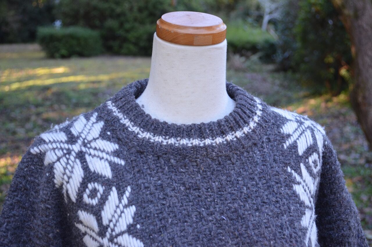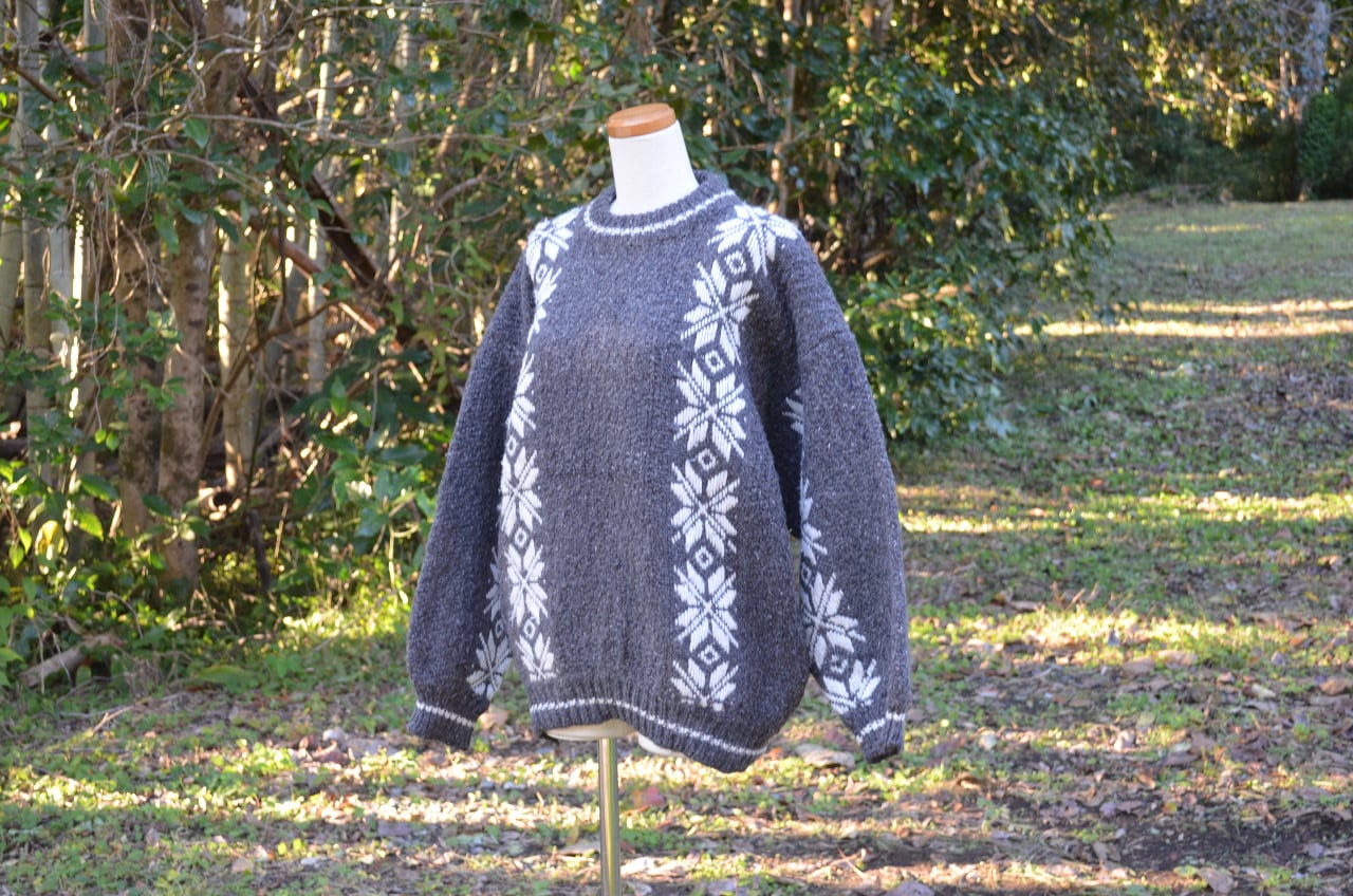 エクアドルニットにしては珍しくい落ち着いたトーンのハンドニット