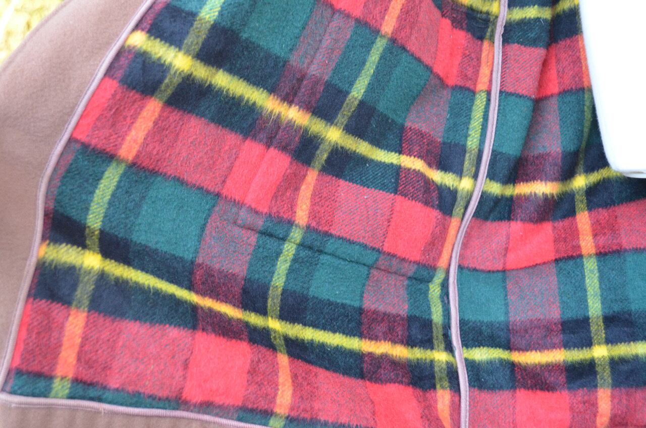 裏側がチェック柄、表地がダブルフェイスメルトン生地を使い